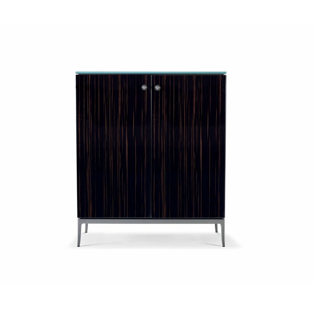 В баре Stiletto сильная женственность Versace прославляется в каждой детали. Лакированная деревянная рама и двери доступны в цветах Кьянти, черном, слоновой кости или красном с глянцевой матовой отделкой или в цвете Satin Grey с матовой отделкой. Стальные ручки украшены логотипом Medusa из металла 3D цвета Satin Grey.