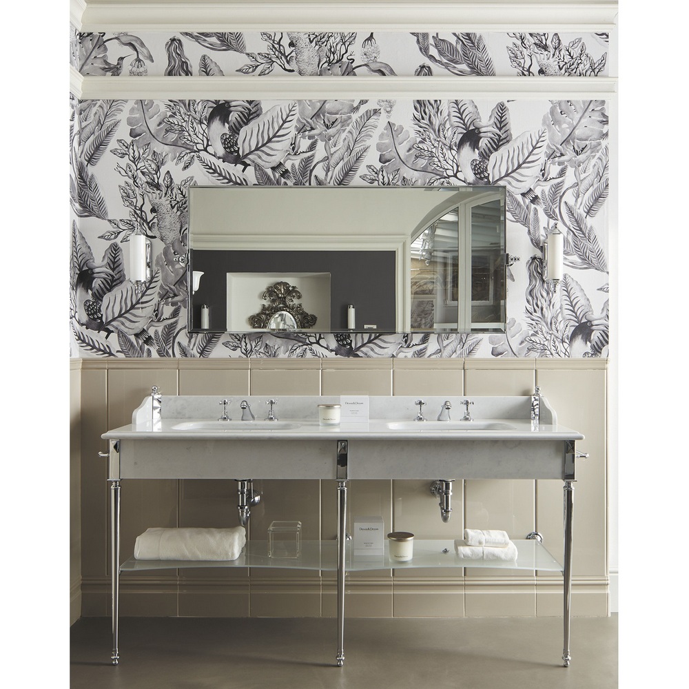 Шедевр формальной гармонии, вдохновленный английским дизайном конца девятнадцатого века, размеры и отделка которого могут быть изменены. Высококачественные материалы: белый мрамор Carrara, Calacatta Borghini или черный мрамор Marquinha для верха и приподнятой спинки, точеная латунь для цилиндрических ножек и полотенцесушителя, доступны в хроме, светлом золоте или полированном никеле.