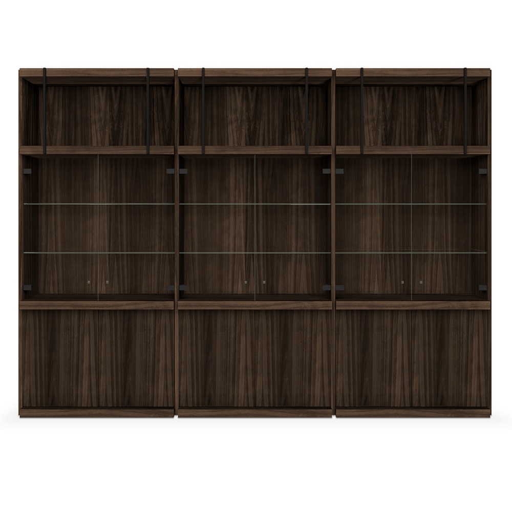 Книжный шкаф 03/2950, структура эвкалипт, с витринами из прозрачного стекла.