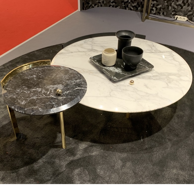 Круглый столик d55 x 53h с мраморной столешницей (Grigio Carnico) и ножками из лакированной латуни.