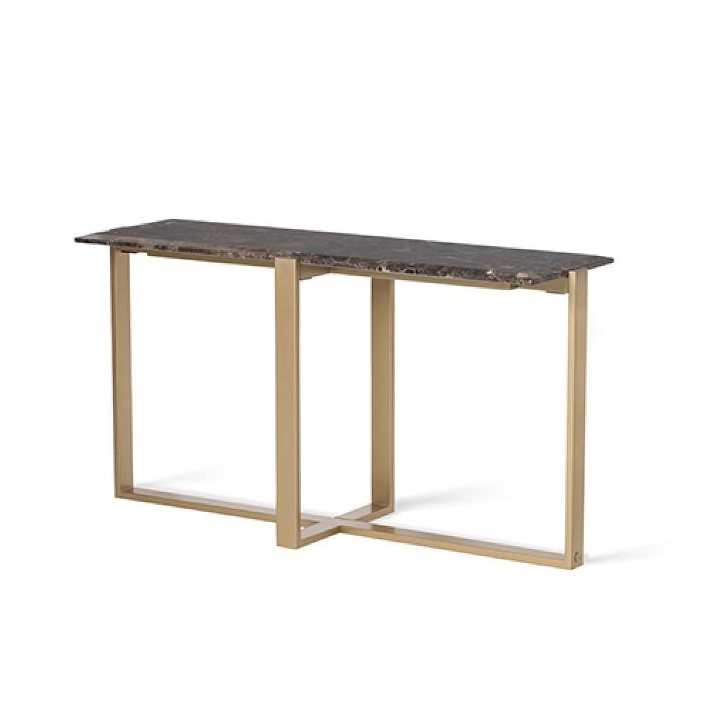 Консоль с мраморной столешницей и основанием, покрытым матовым лаком.