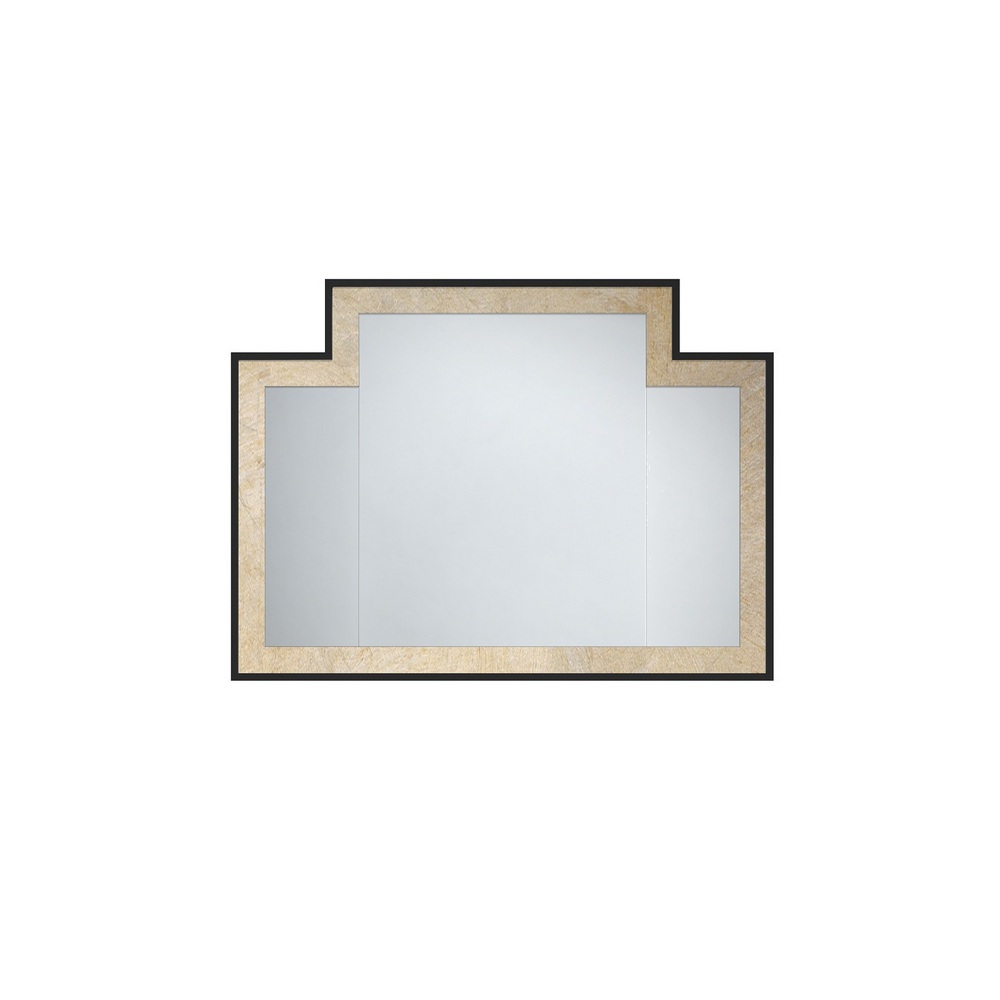 Изысканная вариация утонченной атмосферы американского дизайна сороковых годов для маленького зеркала, характеризующегося строгими геометрическими узорами и решительным хроматическим чередованием между черным краем и внутренней рамой из состаренного алюминиевого листа.