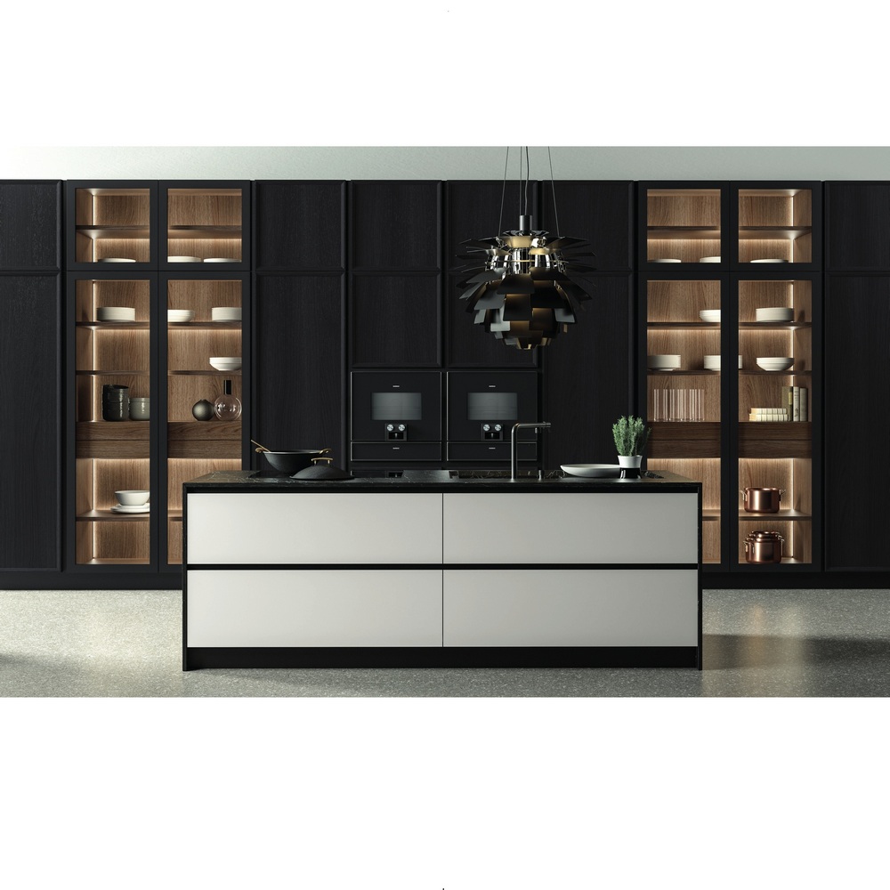 Коллекция Deco может быть интегрирована и в другие зоны проекта помимо кухни. Например в гостиной обстановку в гармонии со стилем кухни дополняют буфеты, которые могут использоваться как барные шкафы, витрины, а так же обеденные столы.
