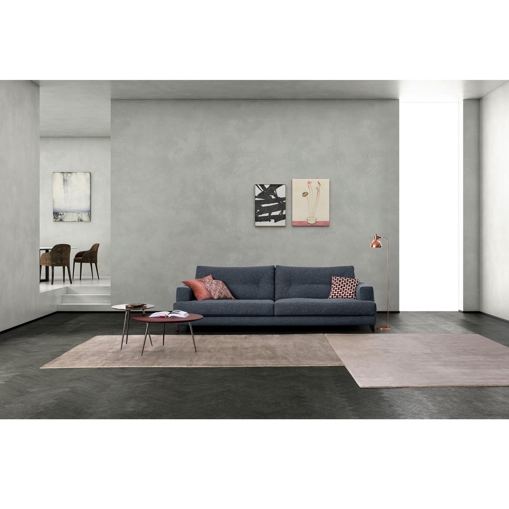 Секционный диван с приподнятыми ножками и удобной свободной мягкой высокой спинкой с тафтингом без пуговиц. Может быть изготовлен в качестве 2-х, 3-х, 4-х, 5-местного дивана, углового или L-образного секционного дивана из ткани, бархата или кожи.