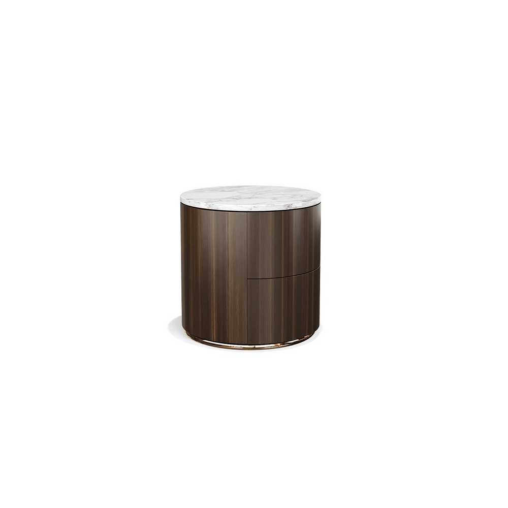 Прикроватная тумбочка с 2 ящиками, каменной столешницей и металлическим основанием.