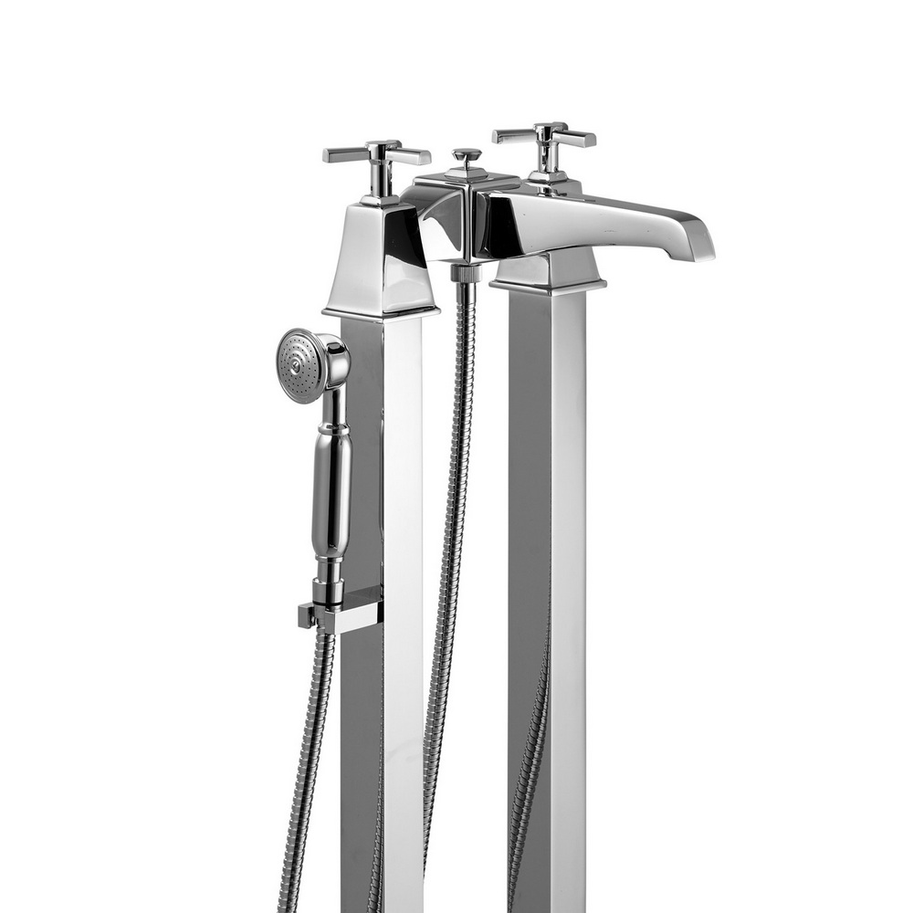 Этот смеситель для ванны и душа со свободно стоящими ножками, шлангом и трубкой вдохновлен американским ар-деко 1930-х годов и переосмысливает его гармонию и пропорции в современном стиле. Монолитная прочность, геометрические линии, отражающие и граненые поверхности явно вдохновлены стилем модерн. Он доступен в следующих вариантах отделки: античная медь, бронза, хром, полированный никель, черный никель, сатинированный никель, светлое золото и розовое золото.