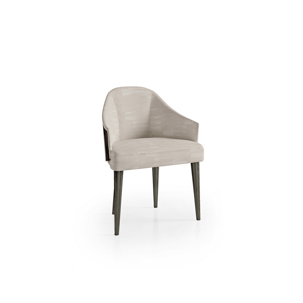 Напоминая стиль середины XX века, кресло Miriam украшено натуральной раковиной из эбенового дерева макасара с глянцевым покрытием, что подчёркивает естественную текстуру дерева. На сужающихся ножках с металлическими вставками для дополнительной прочности стул можно обшивать разными тканями, чтобы гармонично вписываться в любое пространство.